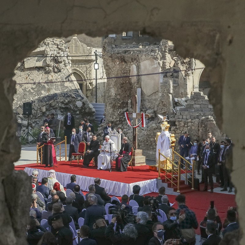 En Hosh al-Bieaa –Plaza de las Iglesias– el domingo 7 de marzo de 2021, el Papa Francisco presidió una oración por las víctimas de la guerra cruel del Estado Islámico contra cristianos, musulmanes y quienes quiera se opusieran a su dominio terrorífico. Así comenzó el Papa la oración:
