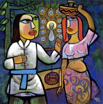 * Jesús y la samaritana del pintor chino contemporáneo He Qi